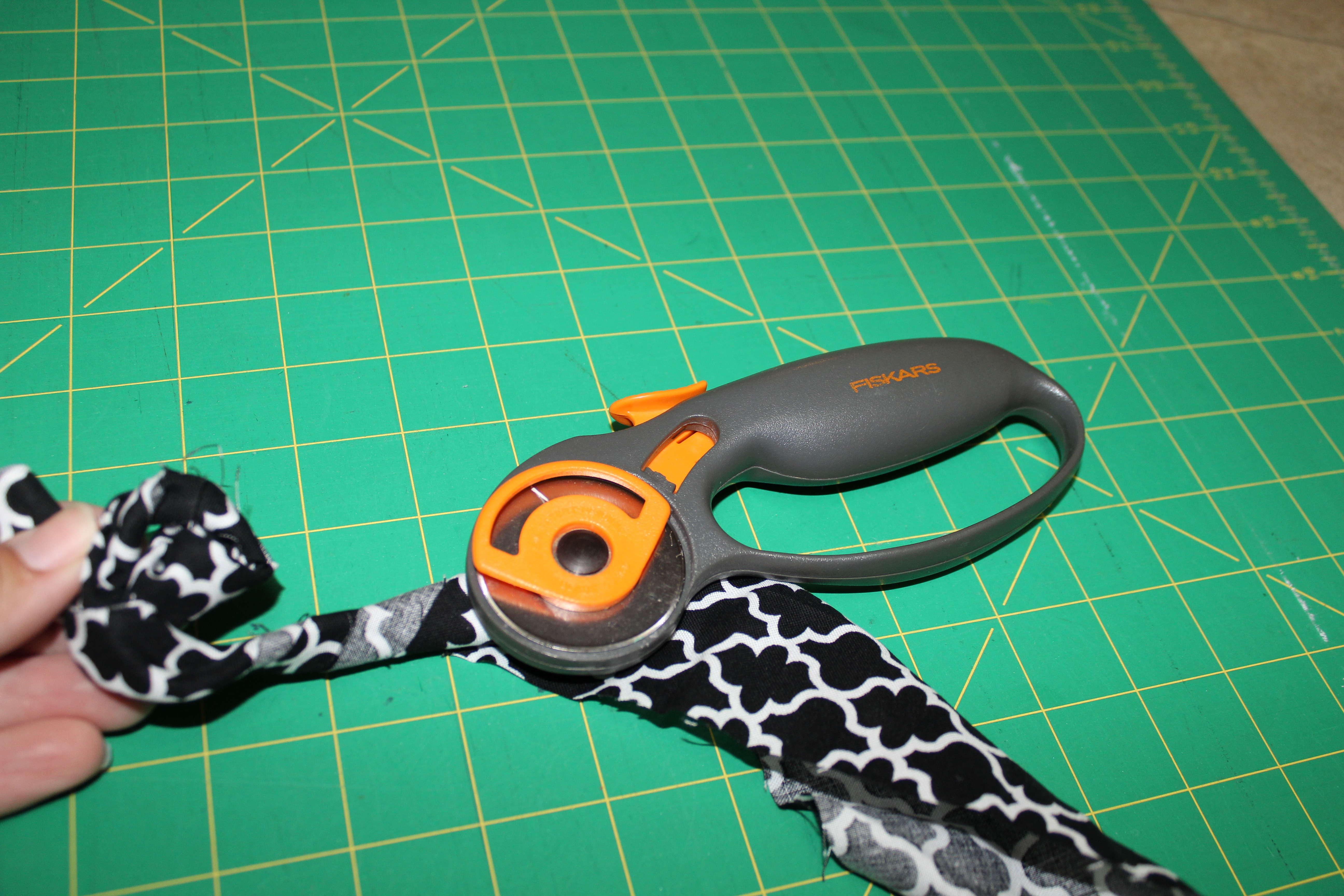 To start with, cut out your fabric. I made mine 3″ x 26″. This is no exact science. You can honestly make it any size and it will work out. I ended up with about a 3″ flower. If you want it bigger, make your fabric larger, likewise if you want it smaller, make your fabric smaller.