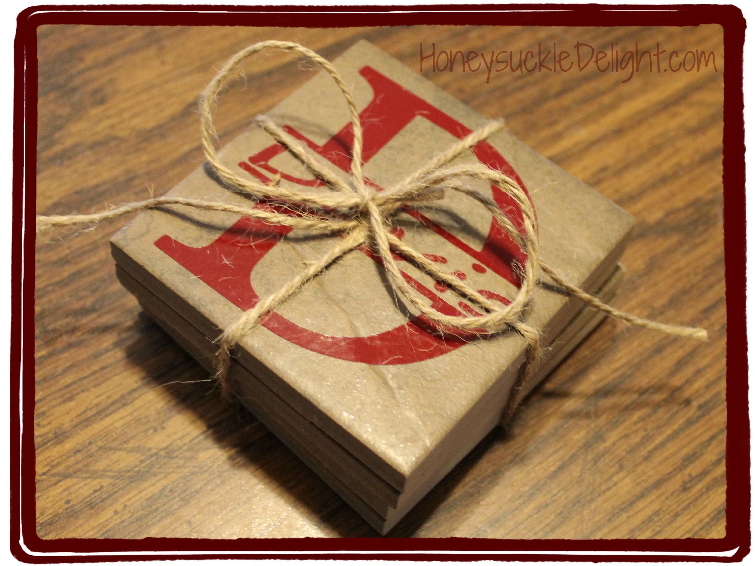 Now stack them all up and tie them together with twine or ribbon. This wedding was a country theme so I thought the twine fit well. If I am making it for Christmas gifts, I like to tie it with Christmas ribbon.