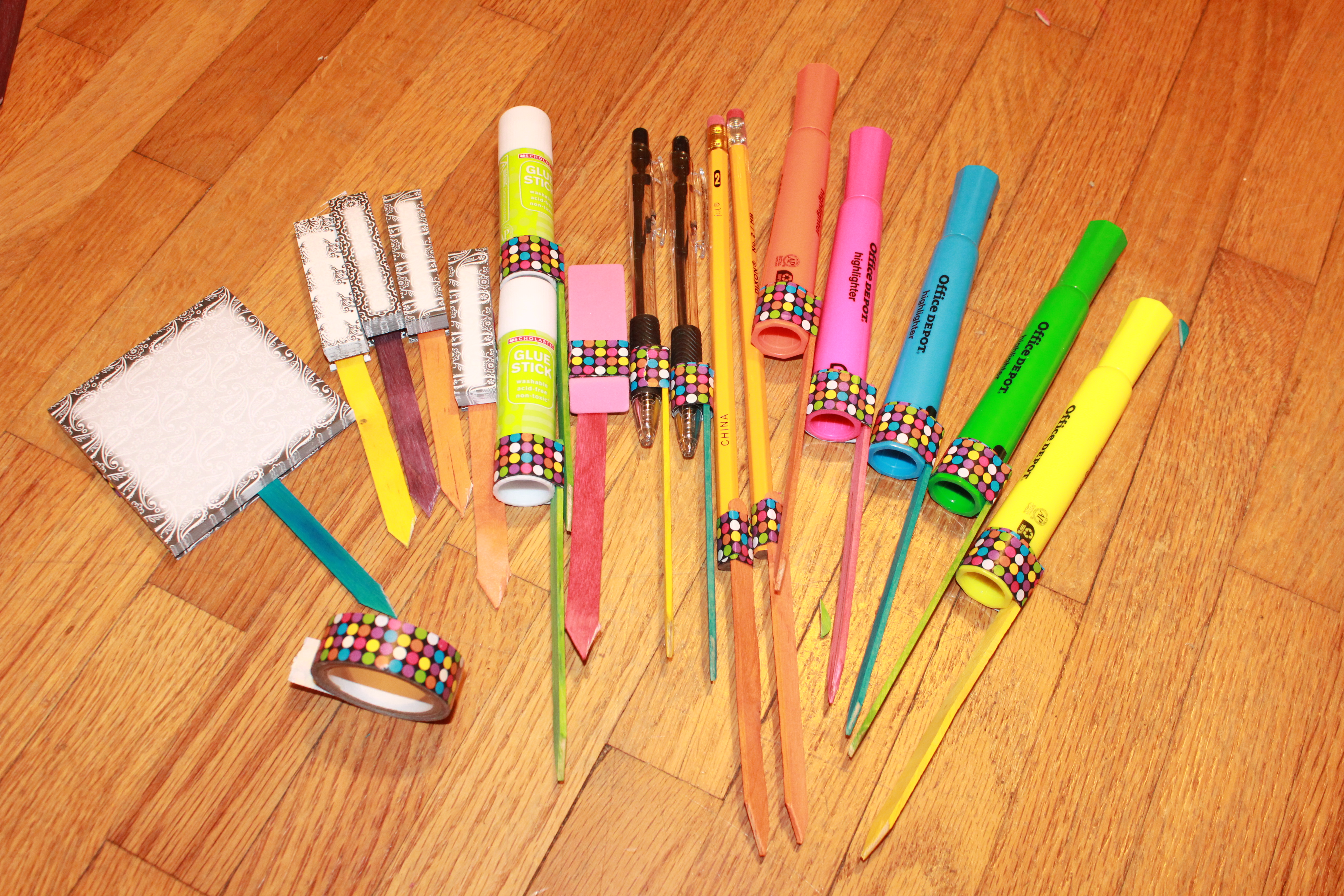 Now for the fun part! Adding all the school supplies. Just push them in far enough they won’t go anywhere.